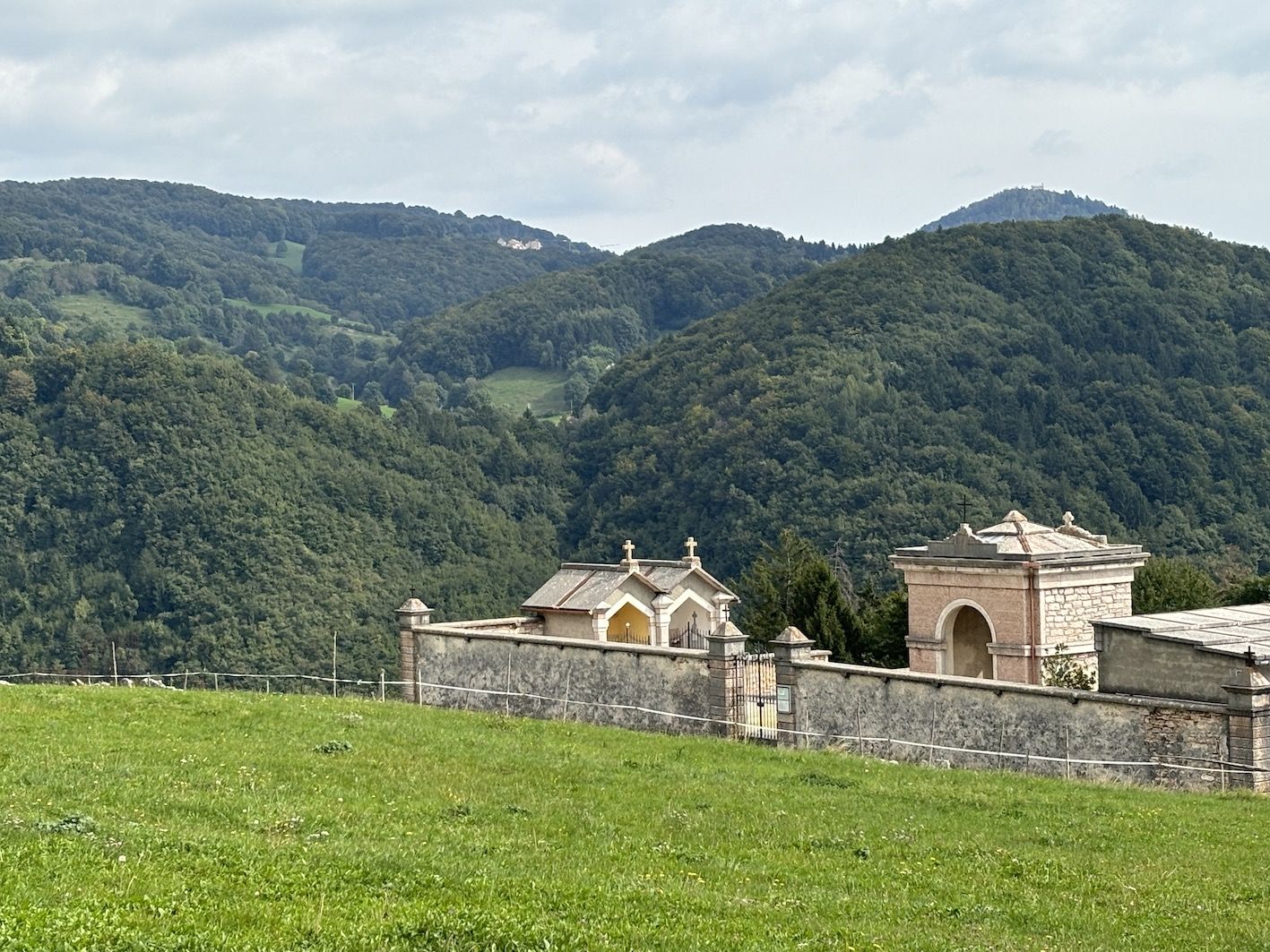 Ci si imbatte in alcune lapidi antiche sulle pareti perimetrali e sulla struttura che svetta al centro del cimitero. C’è un angelo che piange la morte di Maria Scardoni e Domenico Pezzo (1905 e 1908); un altro che depone una rosa “alla pia memoria di Santa Beccherle Vinco” (1843-1896), definita dai figli “sposa e madre esemplare”. Una figura alata è stata posta anche dalla famiglia Scardoni, che “mestamente ricorda” Francesco Scardoni (1859-1905), Giuseppina Scardoni (1860-1880) e Francesca Beccherle (1862-1910). Sempre un angelo prega sulla tomba d’inizio Novecento di Ester Sauro, Aldo, Marco e Maria Valbusa.